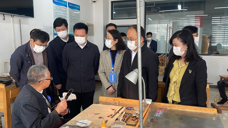 评审期间,湖北省经济和信息化厅一级巡视员周开斌带队来校,实地巡查各工艺类别实操考场,了解选手创作情况,并与我校副校长胡守庚、黄色直播 领导及评审专家交流。